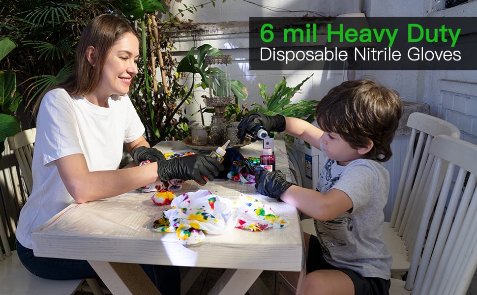 - Heavy Duty - Our 6-mil Thickness disposable nitrile gloves are the strongest form of nitrile gloves, better than plastic, vinyl, or latex. It has superior strength, is puncture resistant, and won't rip or tear easily. The pullout design of the packaging box is convenient and easy to remove.